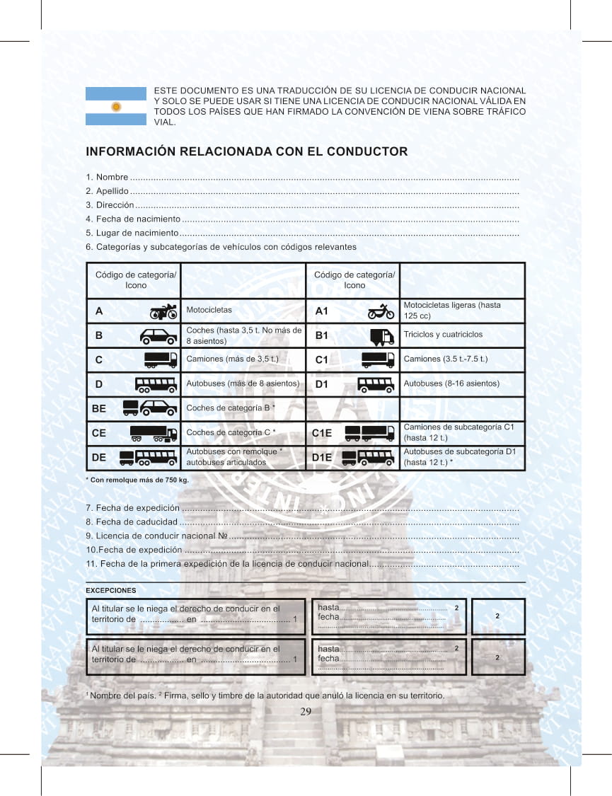 The Card contains the translation of the national driving license and a photograph of the holder.